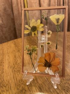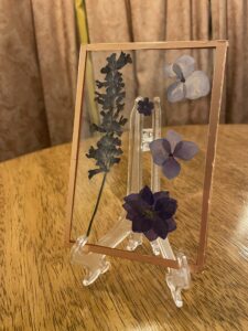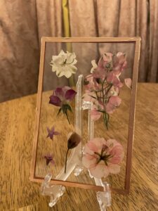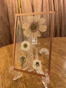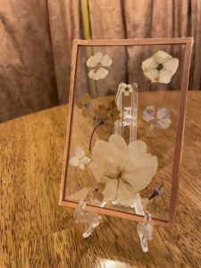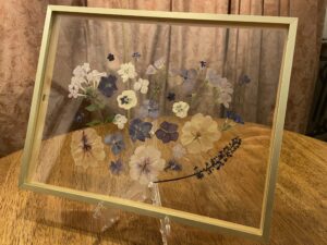 these frames make gifts that last a lifetime. Even if you don’t have the flowers anymore, you can send me a photo of the bouquet or centerpiece and I can buy and recreate the bouquet in a pressed flower arrangement.