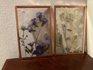 I began preserving flowers of local gardens and creating pressed flower art. Quickly, I began to make custom works for friends and family using their preferences to guide my process.